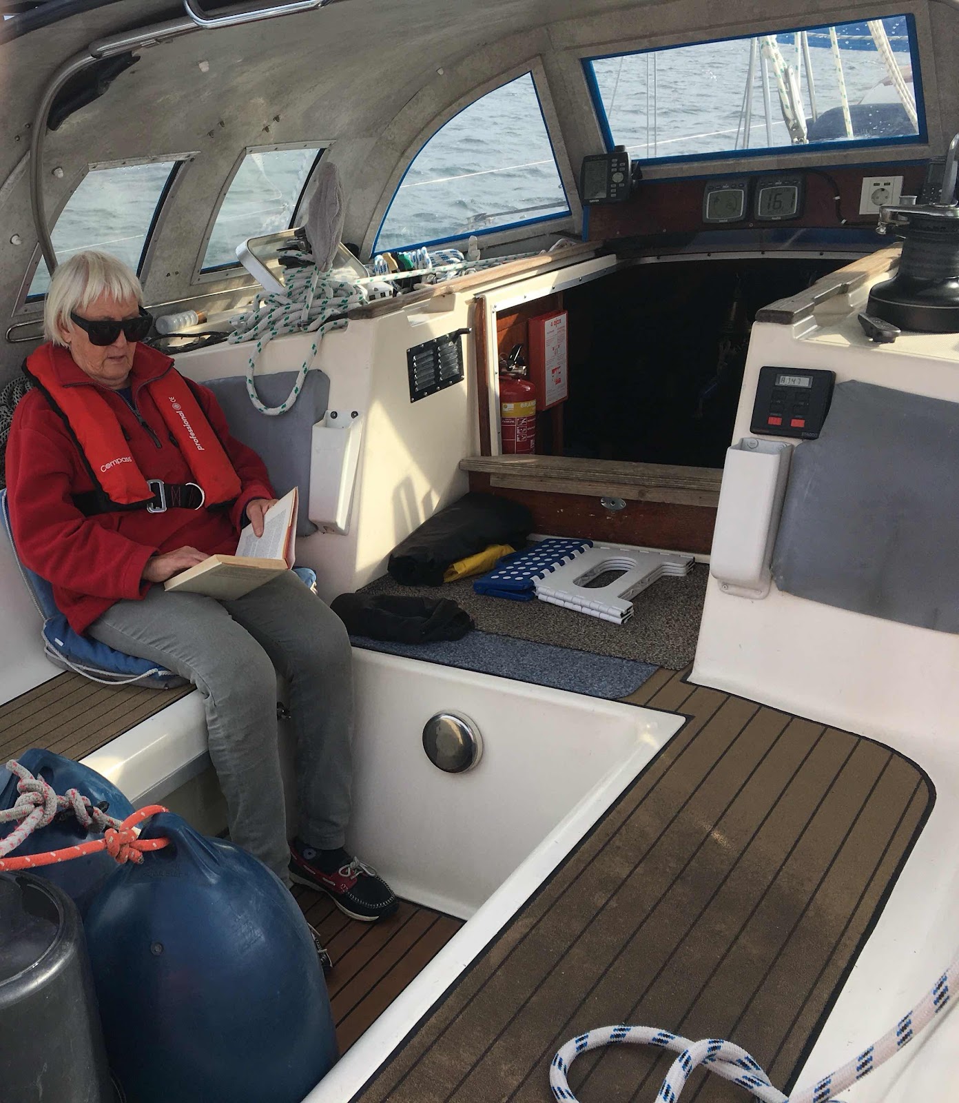 Nu is het tijd voor een bakje thee en een broodje en gaan we even lekker in de kuip zitten waar het zonnetje in schijnt, ik doe zelfs even een tukje.