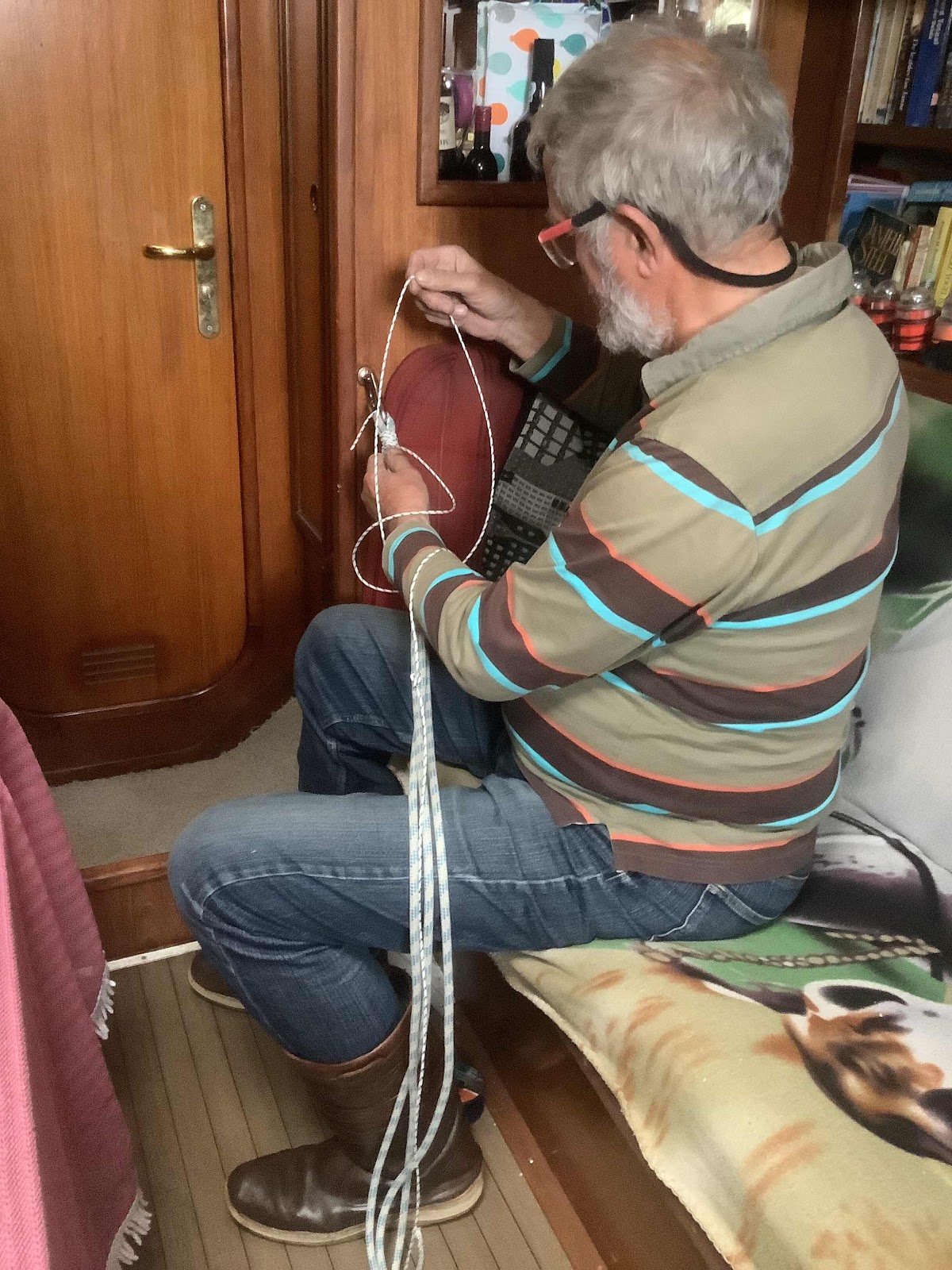 Ik ben nog een tijdje bezig geweest met het maken van een bulletalie die we ten alle tijde kunnen aanbrengen, want wanneer je met de giek ver naar bak of stuurboord vaart, dan kun je er onmogelijk, of alleen met gevaar voor eigen leven bij om die te zetten.
