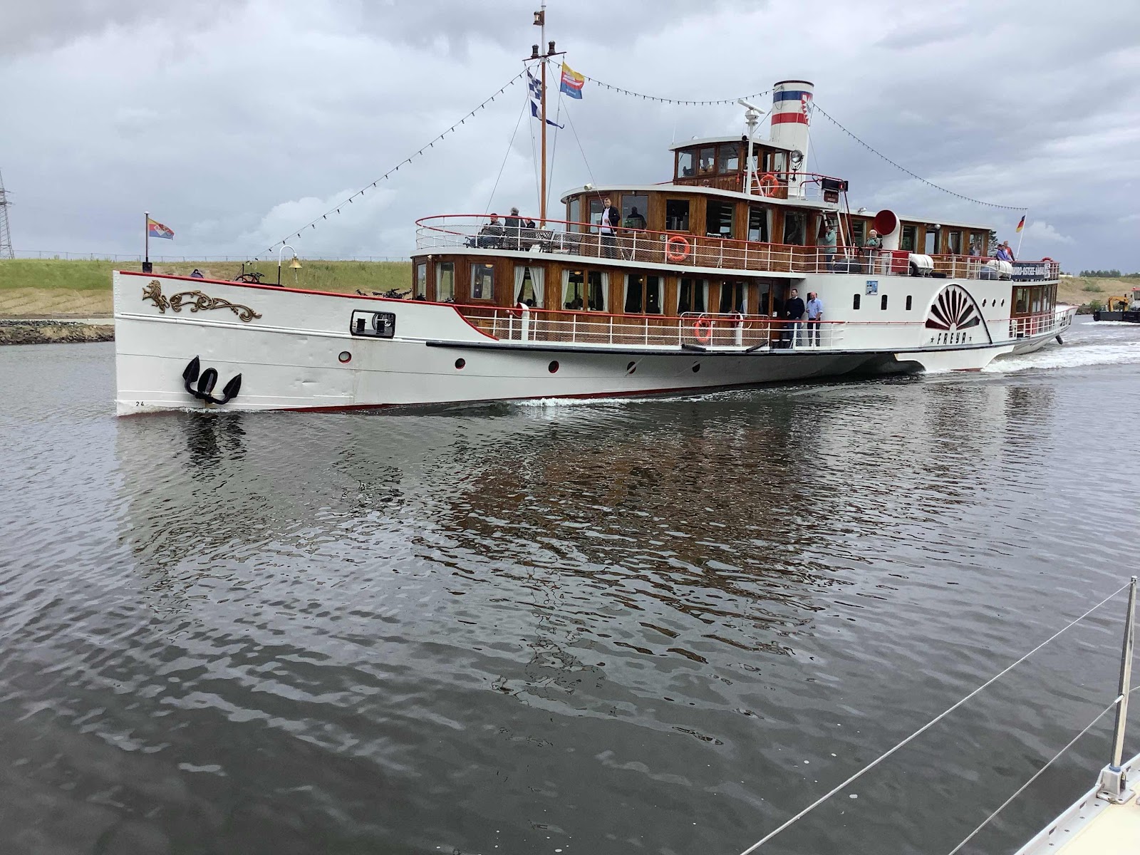 Nu dat achter de rug is, gaan we maar vertrekken richting Kiel het is nu kwart over tien, en onze ETA is 15:30 bij de sluis, en dan maar hopen dat we er gelijk in kunnen als we daar aankomen.