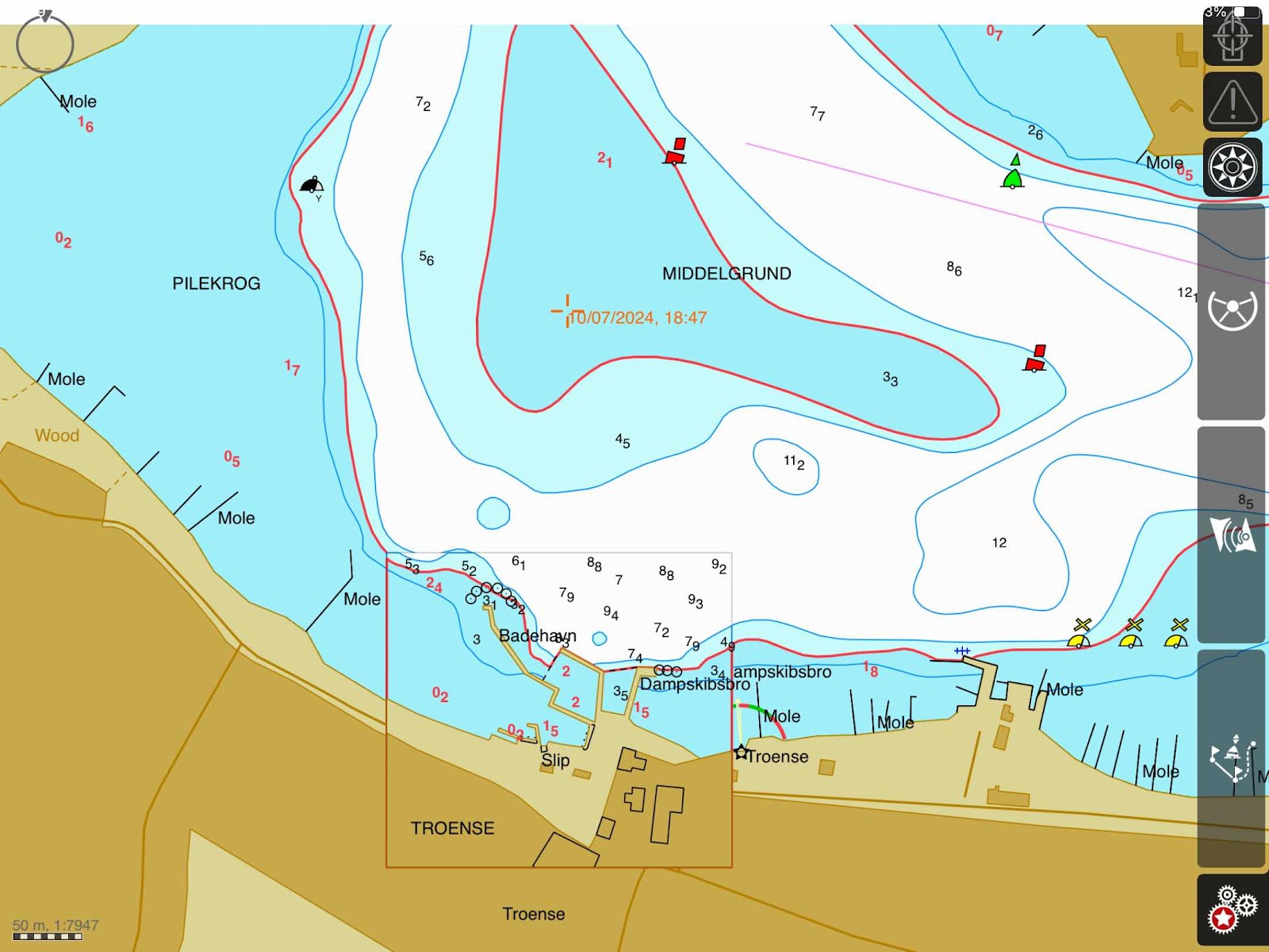 Wij zijn ankerop gegaan,want er is een mooring vrijgekomen en dat lijkt ons veiliger in verband met de verwachte windkracht die er misschien komt, eerst wilde ik naar Lohals op het eiland Langeland, maar die haven lijkt me nu niet geschikt omdat de verwachte wind recht de haveningang daar inblaast.