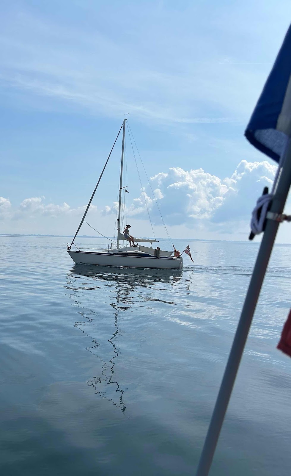 We varen eerst op de motor richting Tunø, en daar aangekomen rollen we de Genua af en kunnen we een beetje zeilen in de goede richting, het grootzeil hadden we direct na het ankeropgaan al snel even omhooggehesen.