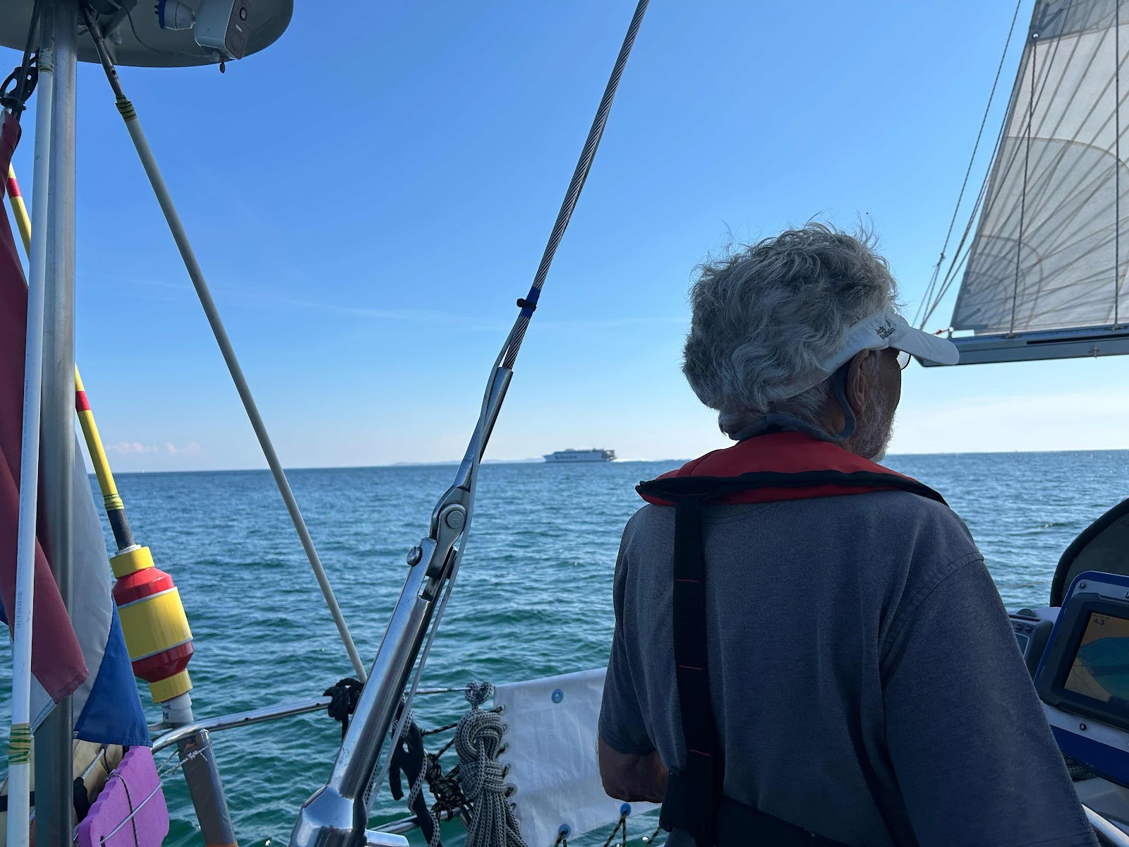 Na er weer wat aan te zijn gewend, gaat het verder prima, en we lopen om en nabij de zes knopen.